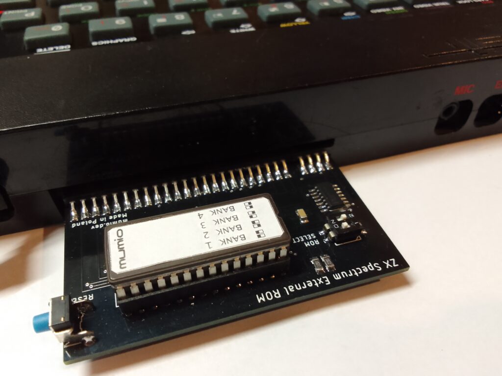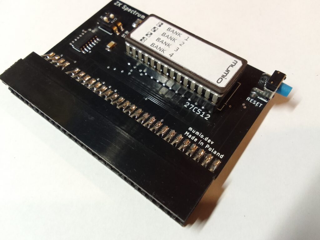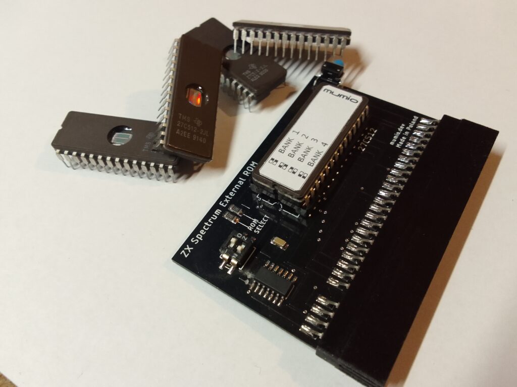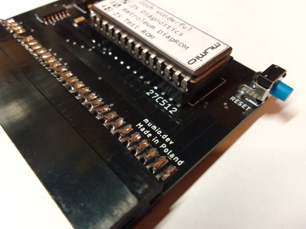 Zewnętrzny diagnostyczny ROM dla komputera ZX Spectrum, wyposażony w układ EPROM 27C512 o pojemności 64 kB (4 × 16 kB).